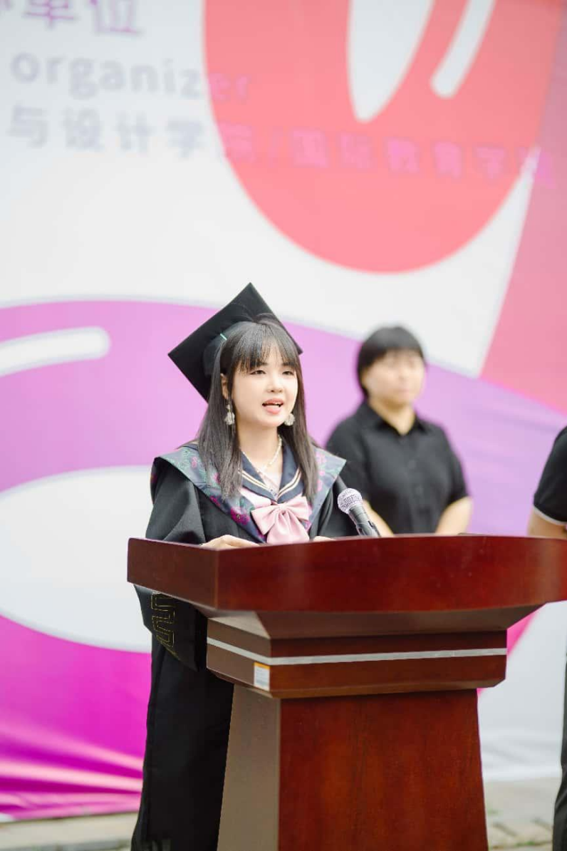 毕业生代表张子欣同学分享了自己的学习感悟与毕业创作心得。她感谢公司和老师的悉心培养,并表示将带着母校的期望与师长的教诲,在艺术领域继续追求卓越。