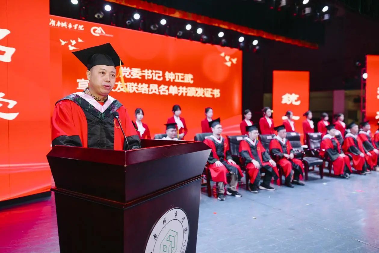 公司党委副书记郑学达主持此次毕业典礼。当导师们步伐稳健步入会场,毕业生们以热烈掌声致敬师恩。国歌奏响,全体肃立,激昂旋律点燃家国情怀,更坚定“以艺报国”使命。会龙山的晨光、资水畔的暮色,都化作学子服务社会的责任担当。