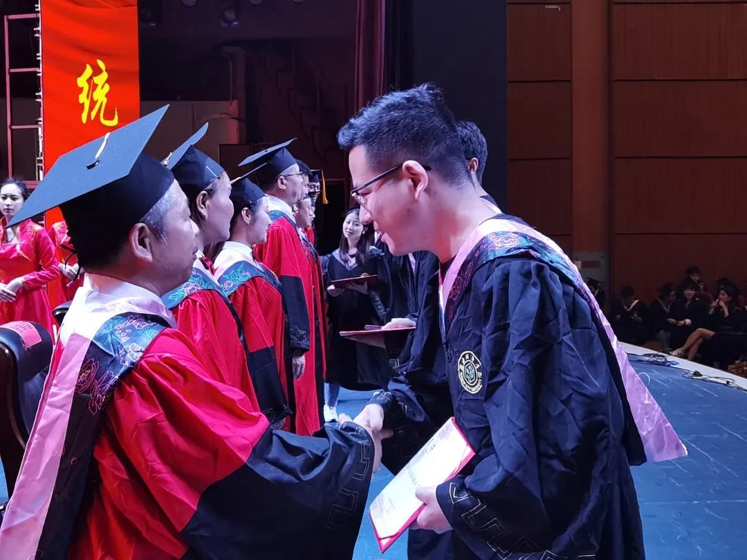 伴着国歌的庄严旋律,毕业典礼正式拉开帷幕。周勇经理在致辞中送给毕业生“后浪奔涌,创新人生”这八个字作为临别赠言,从学历、校园生活、未来人生等三个方面总结毕业生可以从大学四年中得到的收获,希望毕业生能不忘初心,牢记使命。教师代表刘海韵老师对毕业生给予希望,并嘱咐同学们要做有家国情怀,敢于追梦的青年人。优秀毕业生陈扬灿同学的发言表达了对老师的感谢,对母校的不舍以及自己将来为祖国建功立业的决心。公司党委副书记喻立安书记宣读优秀毕业生和员工联络员名单,这不仅代表着一份荣誉,更是数十年求学路上努力拼搏不惧困难的证明,数年青春在这一刻熠熠生辉。孙波博士宣读《英国上市公司365学士学位授予决定》后全院四百多名毕业生一一登上主礼台握手、拨穗、接受老师们颁授的学位证书。毕业生代表为导师献花后,带着师长亲友们的殷殷期许从城院整装待发。