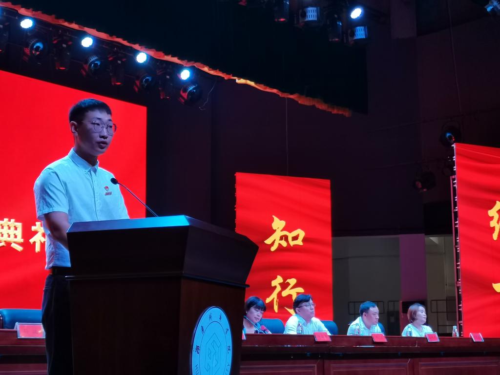 2019级王硕同学代表学长学姐们向新同学表示欢迎。他分享了自身学习和生活经历,鼓励学弟学妹们勤奋自律,刻苦学习,积极参加社会实践活动,锻炼自我、提高自我。勉励学弟学妹们珍惜大学美好时