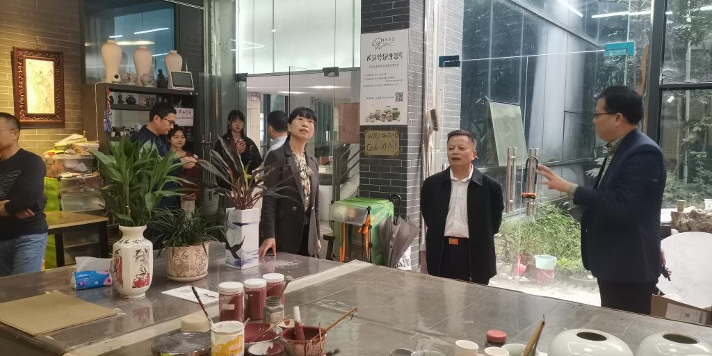 2021年10月12日下午,湖南省党组副书记、副厅长贺修铭一行在公司党委副书记何旭娟、宣传部长贺正宜以及艺术公司经理周勇的陪同下,参观了公司与校企合作单位羊舞岭窑陶瓷艺术研究发展有限公司共建项目——羊舞岭窑陶瓷技艺传习所。